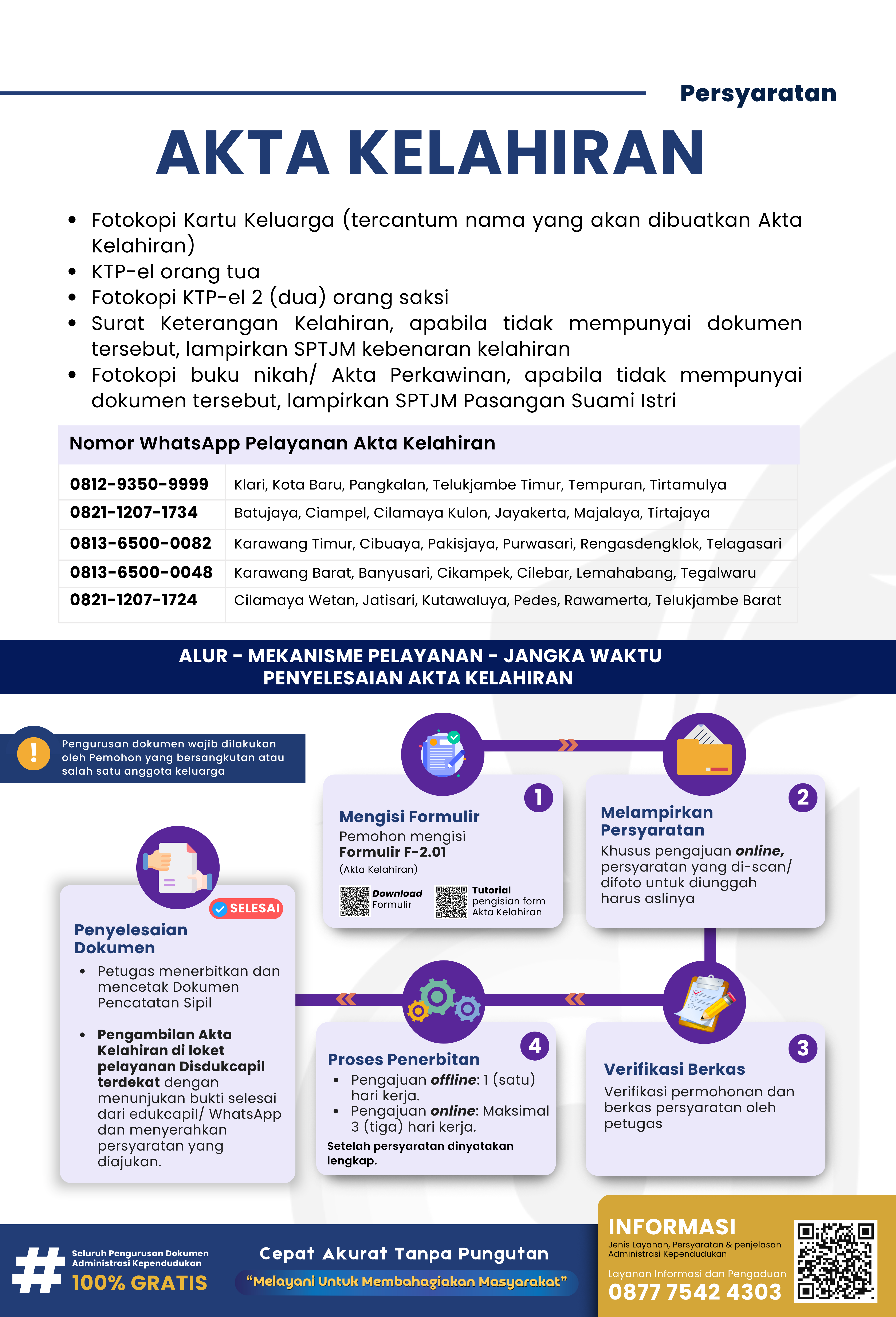 Surat Kelahiran dari Dokter/Bidan/Penolong Kelahiran (ASLI). Bagi yang tidak memiliki dokumen asli tersebut dapat melampirkan Surat Penyataan Tanggung Tawab Mutlak (SPTJM) Kebenaran Data Kelahiran. Dokumen ASLI SPTJM harap DIBAWA saat PENGAMBILAN kutipan akta.Wajib(Download Berkas)